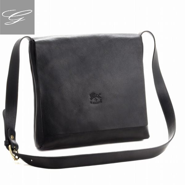 更にpoint5倍 イルビゾンテ Bisonte メンズ レディース兼用 ブラック革 レザーショルダーバッグ フラップ スクエア メッセンジャー A1557 Il ショルダーバッグ メッセンジャーバッグ